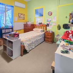 The three-bedroom home with one bathroom and four car accommodation includes a separate study, high ceilings and timber features throughout. Living areas are well proportioned and arranged to allow practical separation, while the layout suits those working from home with dedicated office space alongside everyday living zones. Air-conditioning was installed to all bedrooms, the kitchen and lounge areas in late 2024, and the kitchen is fitted with a gas stove and electric oven installed in September 2025.