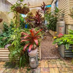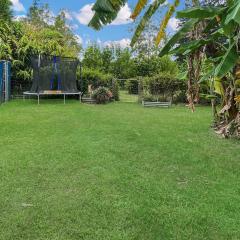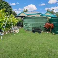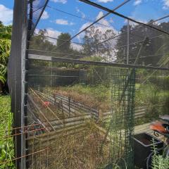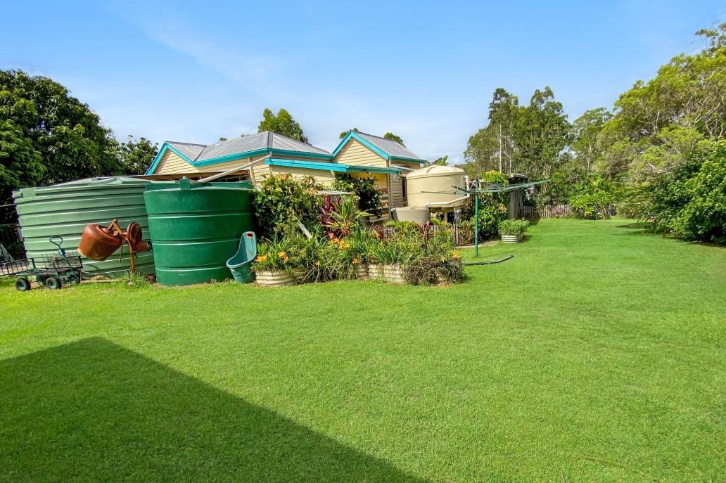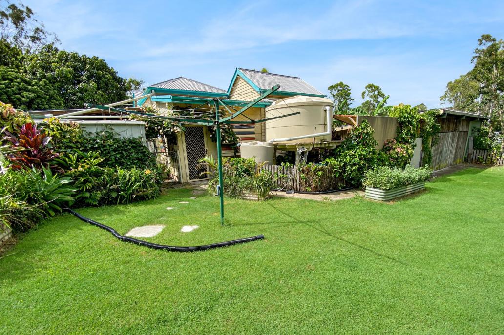 Set up for vegetable gardens, lawn areas and fruit trees — including mango, banana, mandarin, mulberry, macadamia and lychee — further enhance the productivity of the 1,575m² block.