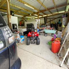 Vehicle accommodation includes a double carport and a powered shed with concrete flooring that provides parking for two vehicles, delivering four covered spaces in total, with additional space within the shed for storage or workshop use.